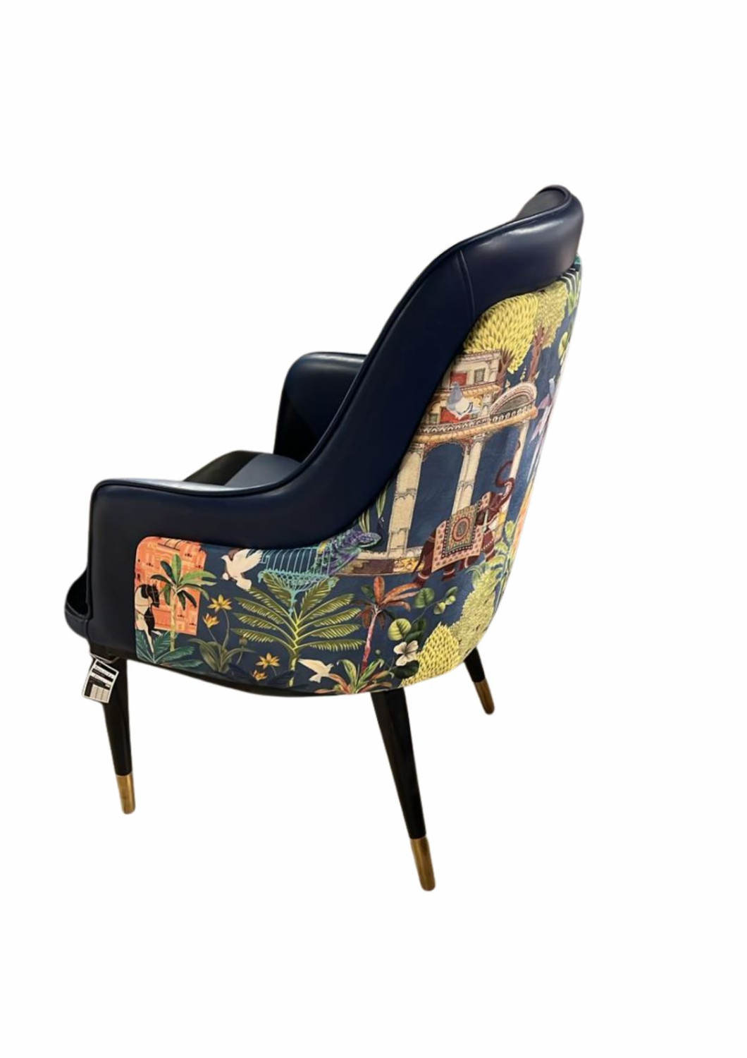 Solid Wood structure with upholstery printed and leather ;legs - black metal