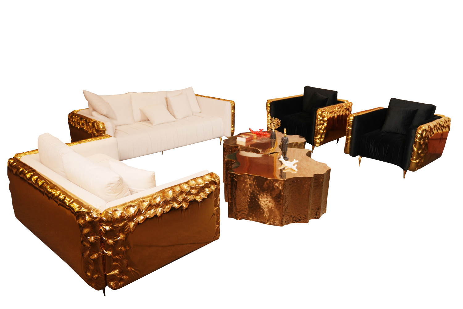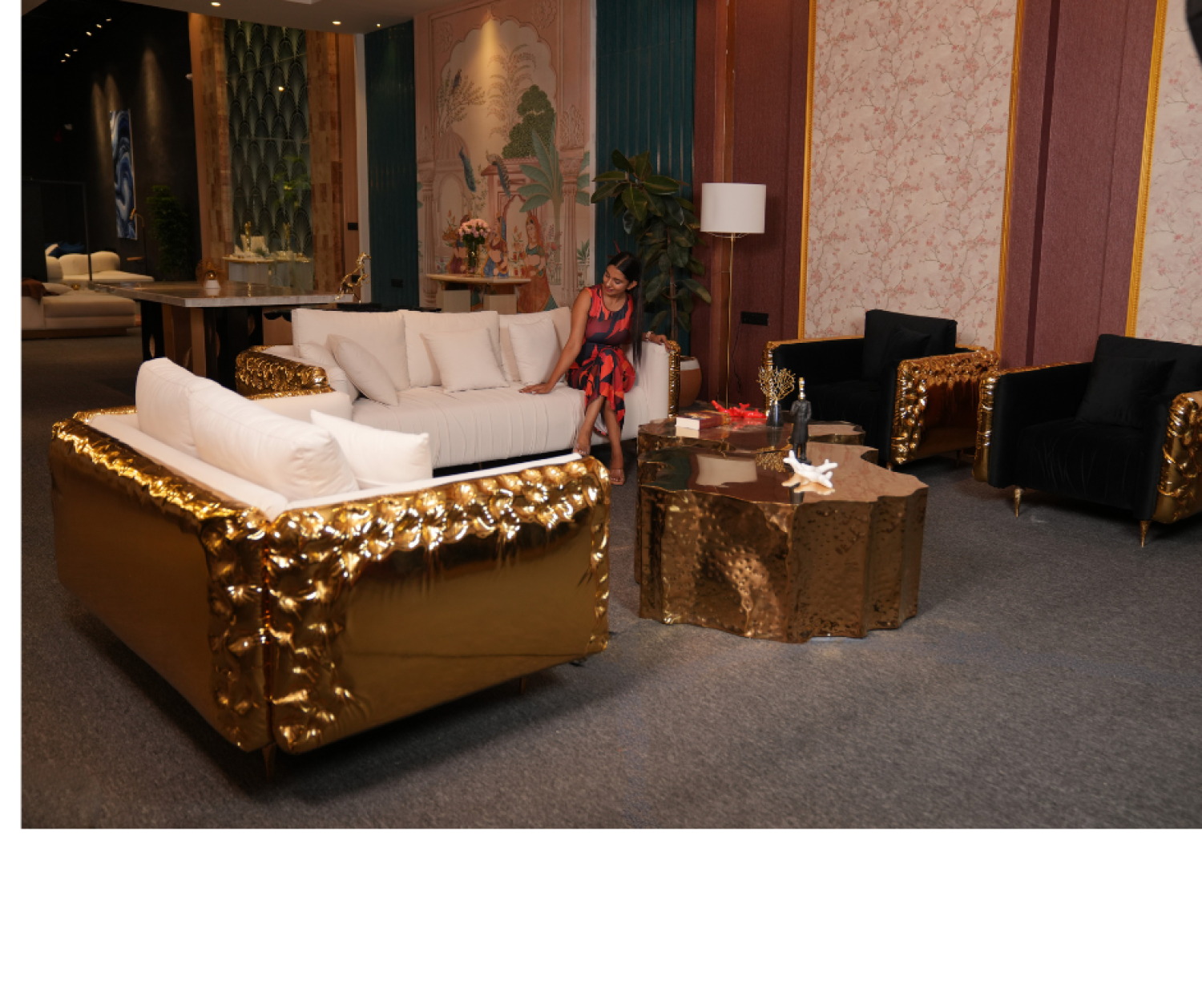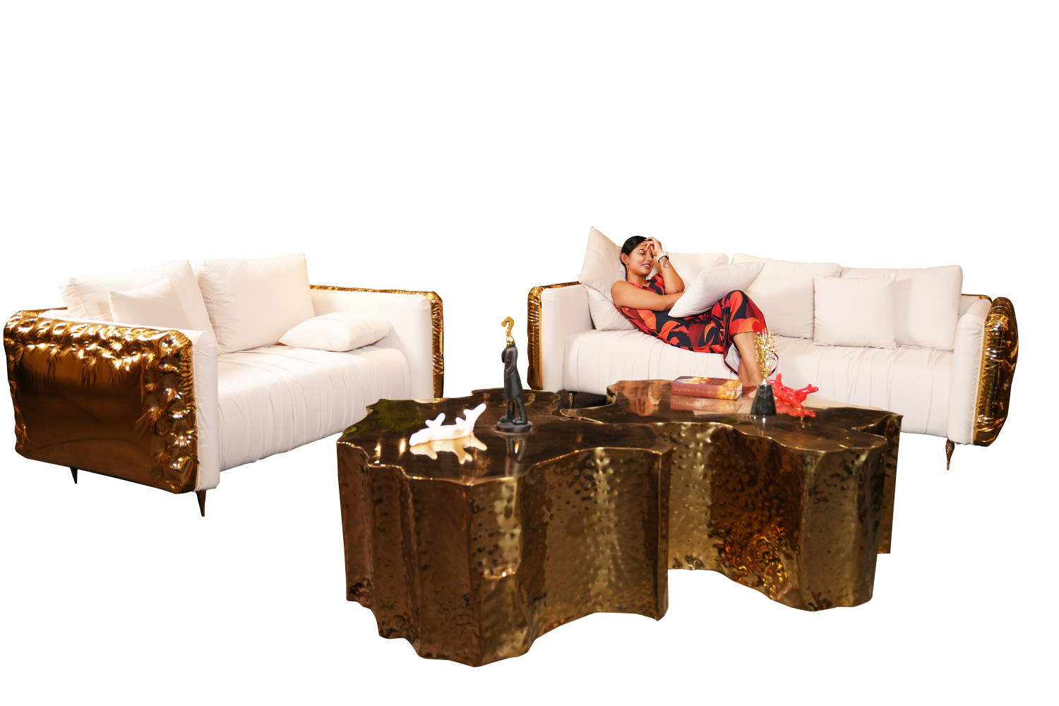 The Sofa Is Crafted With Durable Solid Wood Structure For Long Lasting Durabilty , It Features High Density Foam Cushioning To Ensure Superior Comfort , The upholestery of 3+2 Sofa Is In Apex-03 and back body in Gold Leather, The Upholestery of 1+1 Sofa in Apex-23 and Back Body In Gold Leather , Legs Of The Sofa Is In Gold Metal